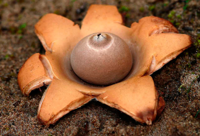 Der junge Fruchtkörper hat die Form einer Kugel. Während des Wachstums platzt die äußere Schale des Fruchtkörpers und öffnet sich in Form von Blütenblättern. Manchmal sind sie gerade, aber häufiger sind die Enden aufgedeckt. Sie können sich verdrehen und verformen. Die Blütenblätter sind zunächst weiß. Wenn es wächst, nimmt es eine bräunliche Farbe an. Im Aussehen ähnelt ein reifes Exemplar einem Stern von bis zu 15 cm Größe. Der innere Teil ist ein runder sporentragender Sack in einer dünnen Schale ohne Bein von hellockerfarbener Farbe. Im Sporensack befinden sich Sporen.