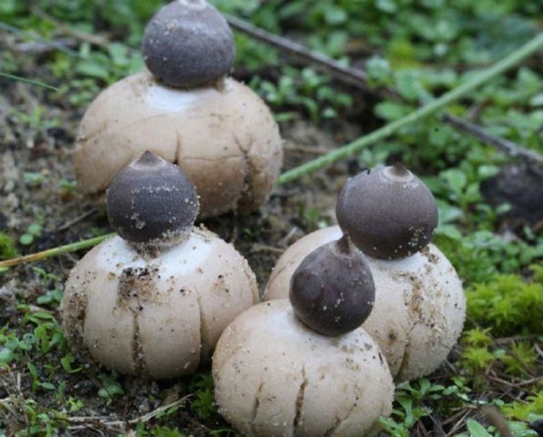 Das gestreifte Sternchen ist in der Liste der ungewöhnlichsten Pilze enthalten. Es ist ein Saprotroph, der von Baumstämmen und verfallenen Stümpfen lebt. Der Fruchtkörper befindet sich zunächst unter der Erde. Wenn es reift, kommt es heraus, wonach die äußere Schale bricht und sich in cremige Lappen teilt. Die Sporen befinden sich im Hals des gestreiften Seesterns und sind mit einer weißlichen Blüte bedeckt. Es hat keinen charakteristischen Geschmack und Aroma. Im Lateinischen heißt der Saprotroph Geastrum striatum.