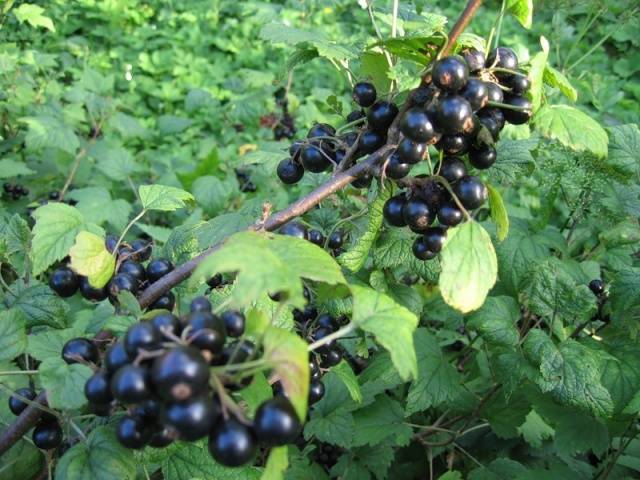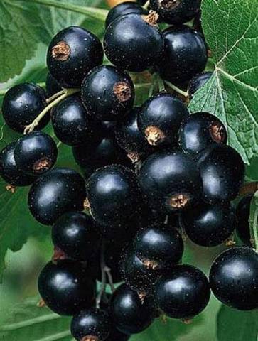 Auf den Johannisbeeren dieser Sorte blühen Pinsel unterschiedlicher Länge mit jeweils 6 bis 13 Blüten. Der Fruchtansatz ist durchschnittlich, daher benötigt die Pflanze Bestäuber. Die Beeren sind rund, schwarz, glänzend und wiegen bis zu zwei Gramm. Der Kelch ist klein, die Haut ist dünn. Die Früchte sind saftig, zart, mit einem ausgeprägten Johannisbeeraroma und Dessertgeschmack. Das Foto zeigt deutlich, dass die Vielfalt der Johannisbeeren fruchtbar ist.