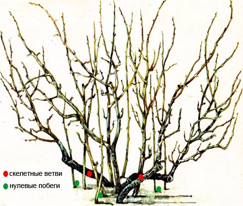 Das Hauptziel der Verjüngung des Busches ist die Entstehung neuer Triebe, die aus dem unterirdischen Teil des Stammes wachsen. Sie werden "Null" -Triebe genannt. Sie wachsen, indem sie einige alte lebensfähige Äste herausschneiden und regelmäßig die Obertriebe (dünne, vertikale Triebe, die sich ganz unten bilden) von den verbleibenden Skelettästen entfernen. Lassen Sie die 3 am weitesten entwickelten "Null" -Zweige, um die Fruchtbildung zu maximieren. Am Ende werden die Enden der Triebe, die zur Fruchtbildung übrig bleiben, zu Holz gekürzt.