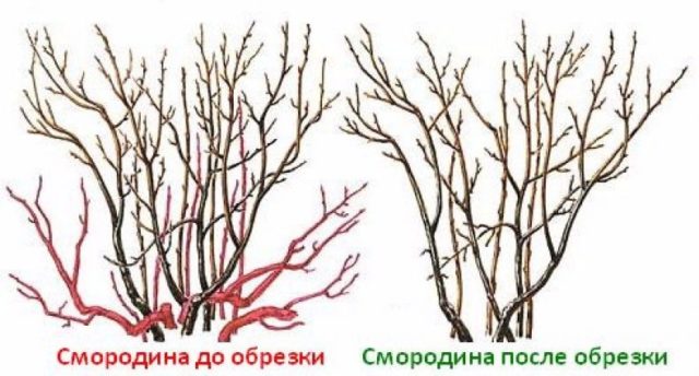 So werden bei schwarzen Johannisbeeren alle Triebe, die älter als 5 Jahre sind, entfernt, Triebe, die älter als 3 Jahre sind, um ein Viertel und Jährlinge um ein Drittel beschnitten.