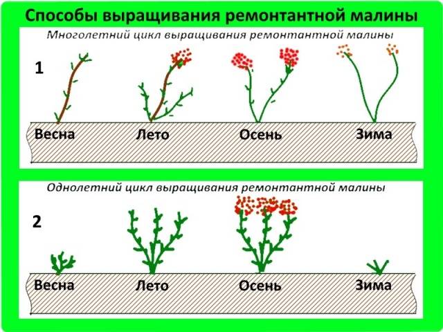 Die beiden oben genannten Arten, restliche Himbeeren anzubauen, sind auf dem Foto unten dargestellt.
