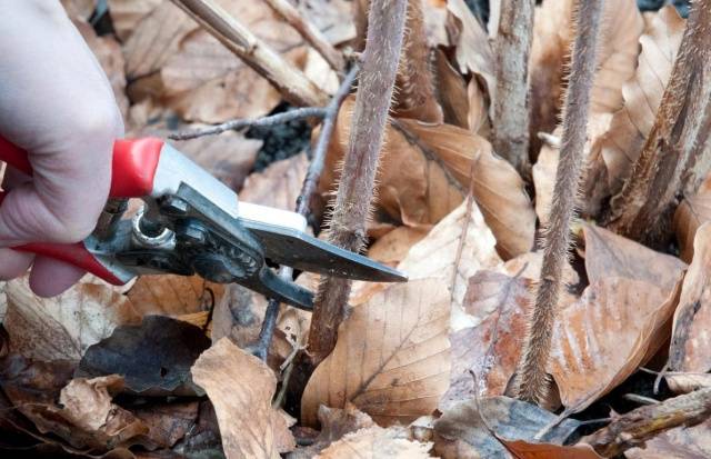- Sie müssen restliche Himbeeren zweimal schneiden: im Frühling und Herbst.... Am Ende des Herbstes, wenn alle Beeren bereits aus dem Busch entfernt wurden, wird der Hauptschnitt durchgeführt.Zu diesem Zeitpunkt werden alle jährlichen Triebe so ausgeschnitten, dass nur noch drei Zentimeter Stümpfe von ihnen übrig bleiben. Im Frühjahr wird ein hygienischer Schnitt durchgeführt: Triebe werden entfernt, erkrankte und getrocknete Triebe werden geschnitten, der Rest wird bis zur ersten gesunden Knospe geschnitten. Irgendwo Mitte April schwellen die Knospen an - zu diesem Zeitpunkt müssen die restlichen Himbeeren abgeschnitten werden.