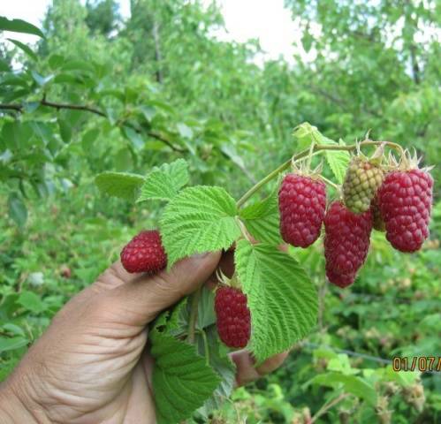 - Die Dornen an den Himbeersprossen sind weich und verursachen keine Unannehmlichkeiten während der Ernte