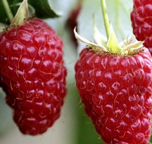 - Die Farbe der Himbeerbeeren ist leuchtend rot, rubinrot;