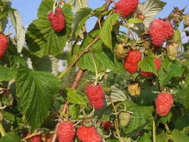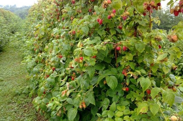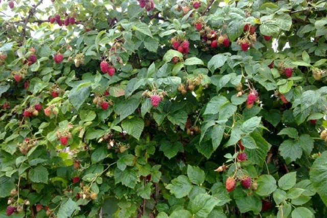 - Kustov. Darüber hinaus wird jede Himbeerpflanze in ein separates Loch gepflanzt und es bleiben nicht mehr als 10 Triebe im Busch.