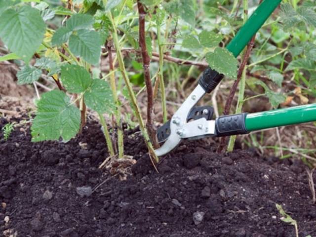 - Himbeeren müssen beschnitten werden, Standardbüsche müssen gebildet werden.