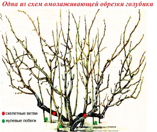 Im Alter von 5 - 6 Jahren nimmt die Produktivität des Blaubeerbusches ab. Zweige dieses Zeitalters ähneln einem Fischgrätenmuster: Ihre Spitzen sind mit einer großen Anzahl kleiner und kurzer Seitentriebe bewachsen, auf denen sich Beeren schlecht entwickeln. Sie werden nach bestimmten Regeln geschnitten: