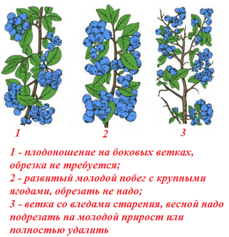 Zusätzlich zu den allgemeinen Grundsätzen, die auf den Schnittarten beruhen, sollten die Sortenmerkmale von Blaubeeren berücksichtigt werden: