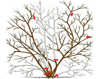 - Der erwachsene Strauch enthält Triebe unterschiedlichen Alters.