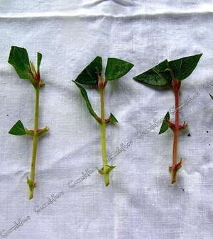 Bei der Ernte im Frühjahr reicht es aus, kurze Stecklinge mit einer Länge von bis zu 12 cm mit drei Internodien zu schneiden. Der obere Schnitt ist im rechten Winkel 5 mm höher von der Niere entfernt. Der untere Schnitt ist in einem Abstand von 15 mm von der Niere schräg. Herbststecklinge werden nach einem ähnlichen Prinzip geschnitten, nur ihre Länge beträgt bis zu 20 cm, und es gibt fünf Internodien.