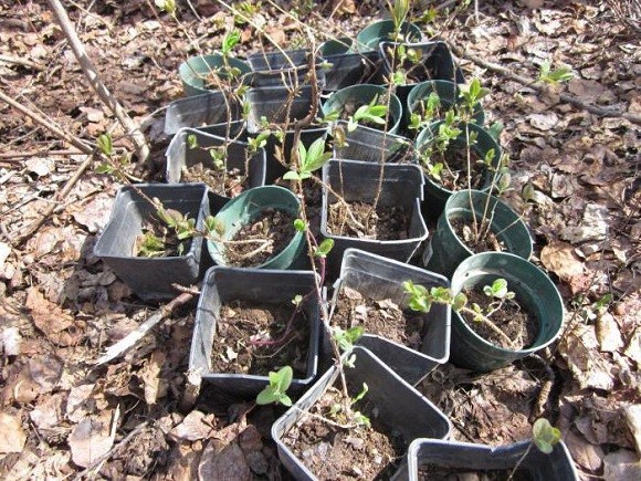 - verholzte braune Stecklinge, die im Frühjahr aus Geißblatt geschnitten wurden, bevor die Knospen anschwellen;