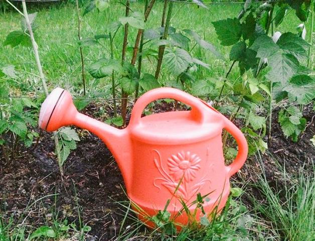 Regelmäßiges Gießen von remontanten Himbeeren stellt ihre normale Entwicklung sicher. Bewässerung ist besonders wichtig bei trockenem Wetter.