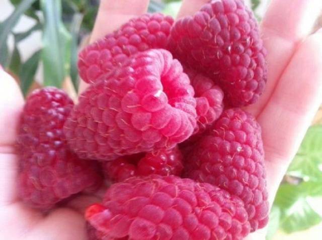 - Tolle Beeren. Ihre Größe erreicht die Größe einer Pflaume und ein Gewicht von etwa 20 g. Natürlich hat nicht jede Beere solche Parameter, aber mit guter Sorgfalt erhalten Gärtner bis zu 6-7 kg große Himbeeren aus einem Baumstrauch.