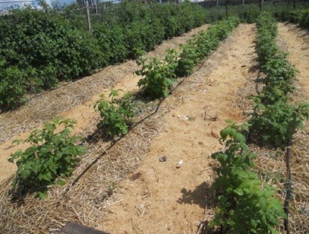 Himbeerpflege Monomakh Hut im Vergleich zu anderen repariert Sorten unterscheiden sich nicht grundlegend. Um eine gute Ernte zu erzielen, müssen Sie besonders auf das Gießen achten. Himbeersorte Cap of Monomakh reagiert auf Änderungen der Feuchtigkeitsmenge. Wenn es nicht ausreicht, werden die Früchte klein. Aber wenn die Bewässerung besser wird, werden die Beeren sofort größer. Das Auflegen einer Tropfbewässerung auf Himbeerkämme hilft sehr.