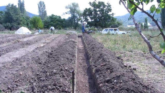 Besondere Aufmerksamkeit sollte der Vorbereitung von Pflanzlöchern oder Gräben gewidmet werden. Sie werden im Voraus ausgegraben, eine Nährstoffmischung aus Torf, Holzasche, Kompost, Humus und Mineraldünger wird auf den Boden gelegt.