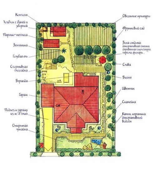 Auf dem Hof versuchen sie normalerweise, 1-2 Bäume oder Sträucher verschiedener Arten zu pflanzen, damit genügend Obst für den Eigenverbrauch zur Verfügung steht. Um solche Ergebnisse zu erzielen, werden in der Nachbarschaft Pflanzen mit ungefähr den gleichen Wachstumsanforderungen gepflanzt. Beim Pflanzen von Sämlingen wird deren weiteres Wachstum berücksichtigt. Äste alter Bäume sollten Beerensträucher nicht verflechten oder beschatten.