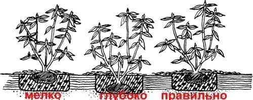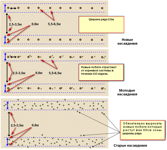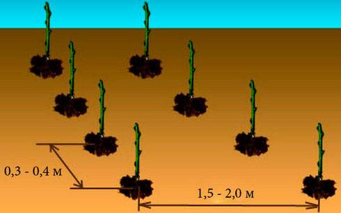 Gleichzeitig verringert sich der Abstand zwischen den Pflanzen auf 50 cm. Diese Pflanzmethode schafft ideale Lichtverhältnisse für die Büsche.