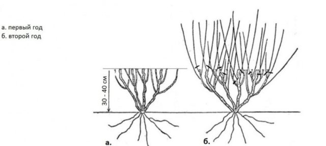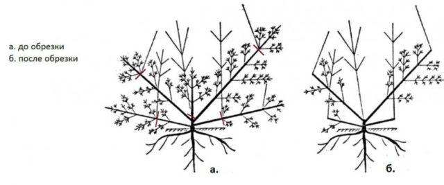 Der bedingt verjüngende Schnitt ist in zwei Stufen unterteilt, die durch zwei Jahreszeiten getrennt sind. Zunächst sollten alle Triebe in einer Höhe von 30-40 cm über dem Boden gekürzt werden. In der zweiten Phase wird etwa die Hälfte der in der letzten Saison gebildeten Zweige entfernt.