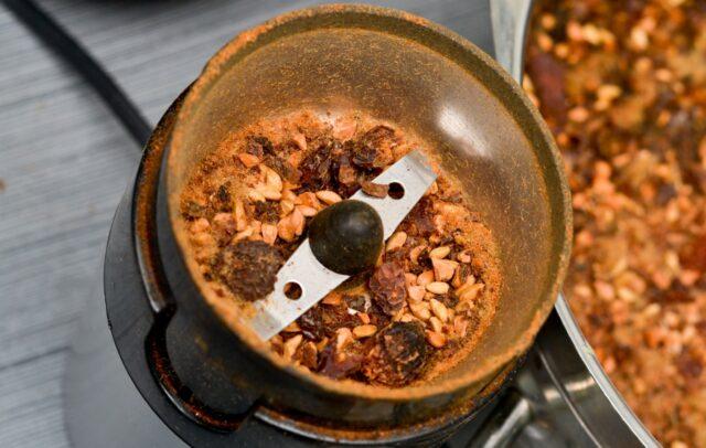 - Mahlen Sie die Früchte in einem Mixer oder einer Kaffeemühle.