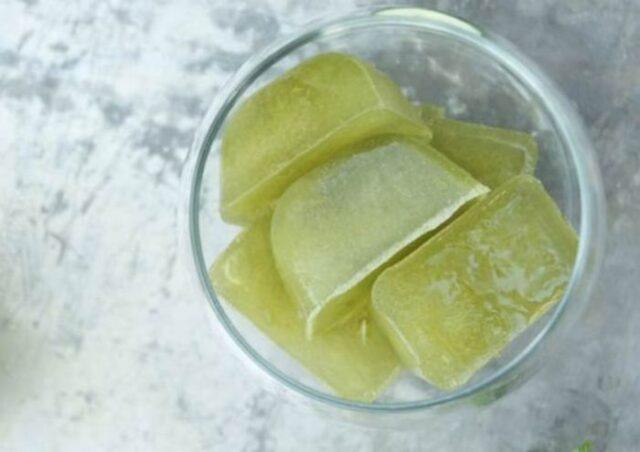 Fertige Eiswürfel sind ein schnell wirkendes Tonikum. Verwenden Sie sie morgens und reiben Sie die Haut. Dadurch werden eine gesunde Farbe und Röte wiederhergestellt, feine Falten werden geglättet, Ödeme verschwinden, das Oval des Gesichts wird leicht gestrafft.
