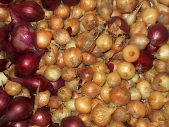 Bevor Sie Zwiebeln gegen Krankheiten behandeln, sortieren und sortieren Sie sie. Selbst wenn alles an eine Rübe geht (kleine, bis zu 1 cm große Sätze können auf Grünpflanzen gepflanzt werden und die größten können verwendet werden, um Nigella zu bekommen), sollten Zwiebeln unterschiedlicher Größe separat gepflanzt werden - dies erleichtert die spätere Pflege. Werfen Sie trockenes, faules, krankes und beschädigtes Wurzelgemüse ohne Reue weg.