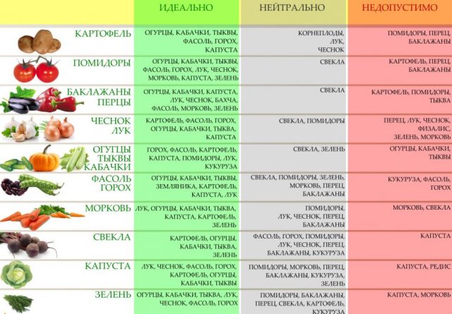 In der folgenden Tabelle werden nicht nur Optionen für das aufgeführt, was nach Zwiebeln gepflanzt werden kann oder nicht, sondern auch die günstigsten, neutralsten und ungünstigsten Vorgänger und Anhänger für andere Gartenfrüchte.