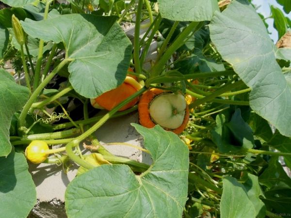 Im Garten sieht ein türkischer Kürbisturban wunderschön und originell aus. Die Früchte heben sich hell vom grünen Laub der Reben ab, können aber zum Basteln verwendet werden. Das Gemüse wird zum Brennen von Bildern und zum dekorativen Malen verwendet.