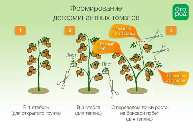 Die einzige Ausnahme sind Standardtomaten. Dies sind die kleinsten Sorten unter den bestimmenden Tomaten, sie haben einen starken Stiel und benötigen daher keine Bildung oder Unterstützung. Sie werden auch als Super-Determinante bezeichnet, sie sind normalerweise die frühesten - sie beginnen in 75-90 Tagen Früchte zu tragen. Aber diese Vorteile müssen für die Menge der Ernte "bezahlen". Ihre Grenze sind drei Bürsten aus einem Busch.