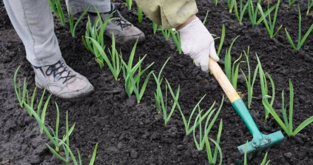 Die folgenden Verbände können alle 10 Tage mit einer weniger konzentrierten Lösung durchgeführt werden. Auch wenn die Pflanze kein Signal gibt, tut Prävention niemals weh. Nach dem Gießen und Füttern muss der Boden im Knoblauchbett gelockert werden.