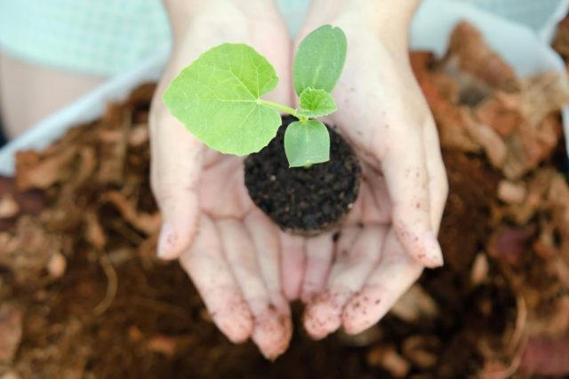 Nach dem Pflanzen werden die Sämlinge für die Nacht mit Spinnvlies bedeckt, damit sie Wurzeln schlagen und stärker werden. Wenn die ersten Blumen erscheinen, wird der Schutz entfernt.