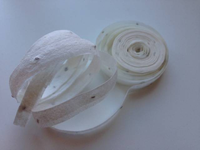 Zu Karotten pflanzen Auf einem Band müssen Sie ein spezielles Material für die Aussaat in einem Gartengeschäft kaufen. Für diese Zwecke ist leichtes Papier, einschließlich Toilettenpapier, geeignet. Das Material wird in bis zu 2 cm breite Streifen geschnitten. Die Länge der Streifen sollte für das gesamte Bett ausreichen.