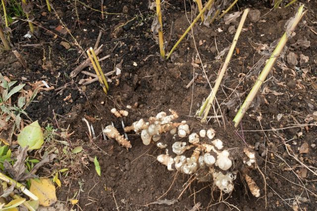 Wenn Sie im Herbst Topinambur pflanzen, sparen Sie Zeit für die Ernte. Nächstes Jahr wird die Pflanze eine ausreichende Anzahl großer Früchte bilden. Im Herbst gepflanzte Knollen behalten ihre Keimung gut bei, es besteht keine Gefahr der Schädigung durch kleine Nagetiere.