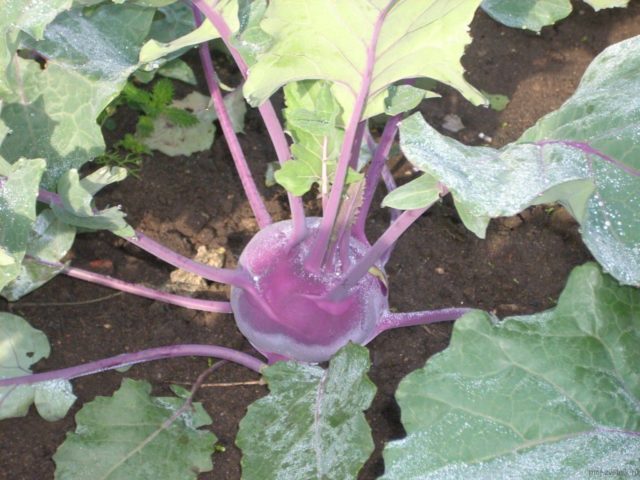 - Violett... Die abgerundeten violetten Stängel dieses Kohlrabi-Kohls reifen in 130-135 Tagen. Das Durchschnittsgewicht von jedem von ihnen beträgt 1,5 kg. Das Fruchtfleisch ist fest und saftig mit einem guten weichen Geschmack. Die Sorte ist resistent gegen viele Krankheiten, unprätentiös. Gärtner lieben es für seinen hohen Ertrag, der etwa 4 kg pro 1 Quadratmeter beträgt. m.