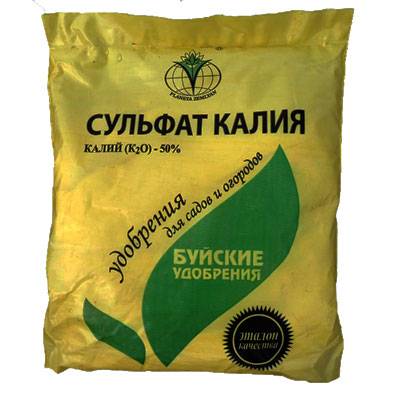 Kaliumsulfat ist ein Dreikomponenten-Dünger mit einem hohen Gehalt an Kalium und Schwefel. Es wird auch Kaliumsulfat genannt. Die Konzentration der Substanzen im Dünger beträgt 50% Kalium, 46% Schwefel und 4% sauren Phosphor (7% neutralen Phosphor). Kaliumsulfat wird auf alkalischen Böden verwendet. Bei erhöhtem Säuregehalt des Bodens kann er nicht verwendet werden.
