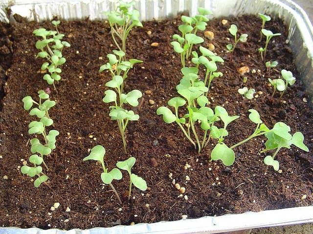 Kohlsämlinge sorgen für 12 Stunden Licht und frische Luft ohne Zugluft. Die Pflanzen werden regelmäßig gewässert, es ist wichtig, dass der Boden nicht austrocknet.