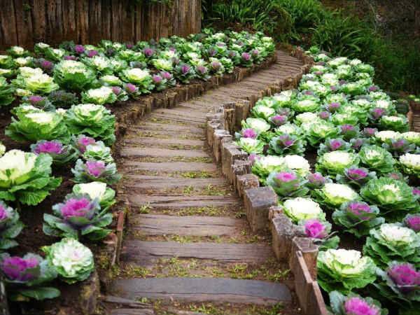 Die oben genannten dekorativen Kohlsorten breiten sich aus und sind massiv, daher werden sie selten als eigenständiges Gestaltungselement verwendet. Häufiger werden solche Sorten in einem Blumenbeet durch andere Zierpflanzen ergänzt.