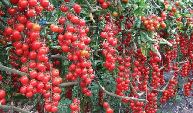 Eine Cluster-Hybride, eine dieser Tomaten, aus der ein riesiger Tomatenbaum in einem Wintergewächshaus mit ausreichend Platz, Beleuchtung, Wärme und intensiver Fütterung gezüchtet werden kann. Möglicherweise handelt es sich um eine ertragreiche Tomate mit einer langen Fruchtzeit. Die Trauben enthalten 5-6 ausgerichtete rote Früchte mit einem Gewicht von 40 bis 60 g und dichtem und fleischigem Fruchtfleisch.