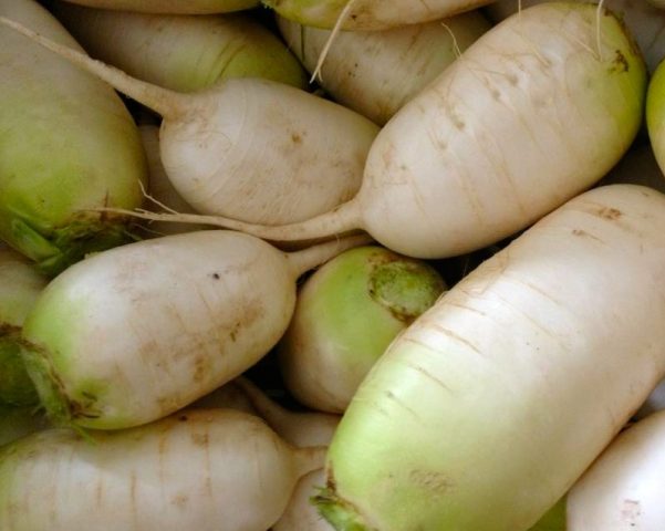Die bekanntesten für das Pflanzen unter unseren Bedingungen sind Daikon-Sorten der frühen Reifung der Minovashi-Gruppe. Wurzelfrüchte sind lang, bis zu 40-50 cm, mit einem Durchmesser von bis zu 8 cm. Sie sind zu drei Vierteln ihrer Größe in den Boden eingetaucht. Es ist besser, solche Sorten in losen sandigen Lehm zu pflanzen.