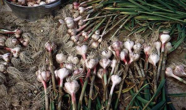 - Die Ernte von Winterknoblauch erfolgt bei trockenem, warmem Wetter. Gleichzeitig wäre es gut, die Prognose für die nächsten Tage zu betrachten, da es ratsam ist, den Knoblauch zu diesem Zeitpunkt auf der Straße zu lassen.