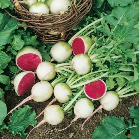 In den letzten Jahren haben Hobbygärtner begonnen, in ihren Gehöften Rettich mit rotem Fleisch anzubauen. Die Hybride unterscheidet sich von anderen Sorten durch Unprätentiosität in Anbau, Pflege und ergibt eine gute Ernte.