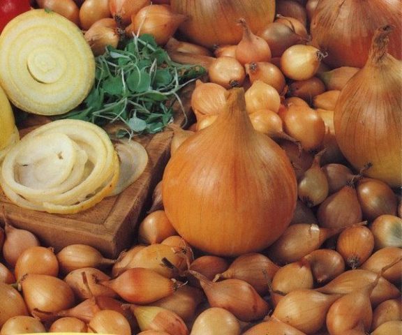 Ausgewählte Zwiebelsätze Herkules mit gelben oberen Schuppen ohne Flecken und Beschädigungen ergeben eine hohe Ausbeute an großen Köpfen, die lange gelagert werden.