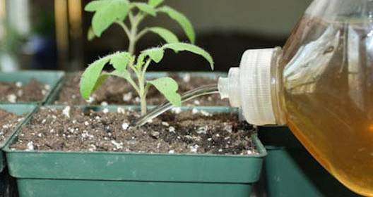 Die oben genannten Düngemittel werden zur Fütterung von Sämlingen oder bereits erwachsenen Pflanzen verwendet. Für junge Tomaten wird empfohlen, die Stoffkonzentration im Verhältnis zu den oben vorgeschlagenen Anteilen geringfügig zu verringern. Für eine integrierte Tomaten füttern Sie können eine Mischung aus zwei oder drei einfachen Substanzen herstellen.