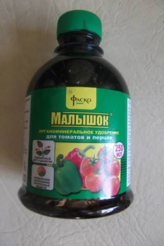 - Baby. Der Organomineraldünger "Malyshok" wird zur Fütterung von Sämlingen und bereits im Boden angebauten Tomaten nach dem Pflanzen verwendet.Mit diesem Medikament können Sie die Stressresistenz von Pflanzen erhöhen, sie auf die Transplantation vorbereiten und die Entwicklung des Wurzelsystems verbessern. In einer Lösung des Arzneimittels können Sie Tomatensamen einweichen, wodurch der Keimungsprozess beschleunigt und die Keimung erhöht wird. Sie können einen Dünger basierend auf dieser Zubereitung herstellen, indem Sie 100 ml Substanzen in einen Eimer Wasser geben.