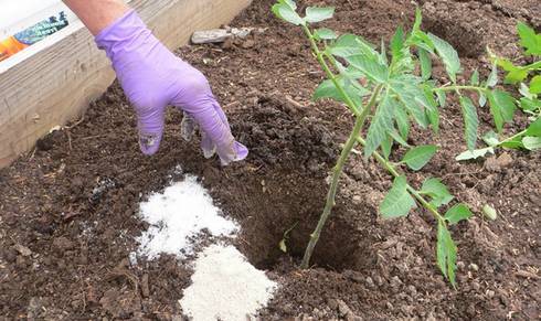 - Ammophos... Dieser Zweikomponenten-Dünger enthält ca. 50% Phosphor und etwas mehr als 10% Stickstoff. Granulatdressing enthält kein Chlor, fördert die Entwicklung des Wurzelsystems von Tomaten und die frühe Reifung von Gemüse. Zum Füttern von Tomaten kann die Substanz trocken in die Rillen auf den Graten mit aufgetragen werden Landungen oder in Form einer Lösung zum Gießen unter der Wurzel. Es ist wichtig zu beachten, dass trockener Ammophos in einem Abstand von nicht weniger als 10 cm vom Pflanzenstamm auf den Boden aufgetragen wird.