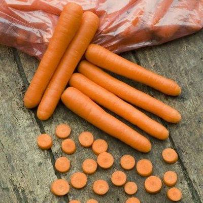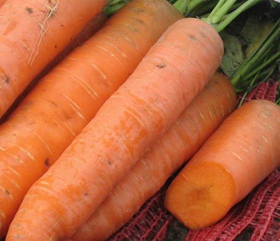 Entsprechend den äußeren Merkmalen und geometrischen Parametern der Wurzelpflanze wird die Sorte Bolero F1 als Sorte Berlikum / Nantes bezeichnet. Die Form der Karotte ist zylindrisch, die durchschnittliche Länge beträgt 15 bis 20 cm, das durchschnittliche Gewicht variiert zwischen 100 und 200 g. Die Spitze des Gemüses ist rund. Sie können die Wurzelernte der Sorte Bolero F1 auf dem Foto sehen: