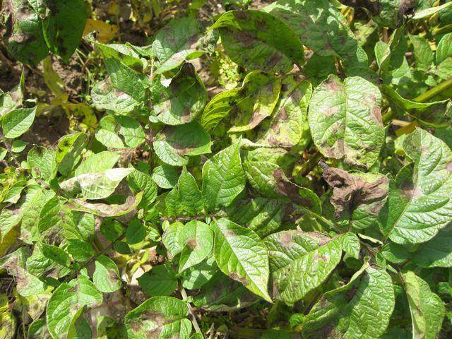 Die Krankheit manifestiert sich in Form von undeutlichen graubraunen Flecken auf den Knollen, Blättern und Stielen der Pflanze. Kranke Kartoffeln sollten nicht gegessen werden.