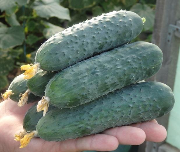 Die Ernte zeichnet sich durch gute Regeneration und hohe Erträge aus. Trägt lange Früchte bis zum Frost. Für eine Sammlung werden bis zu 17 Stück aus jedem Busch entfernt. Es ist bemerkenswert, dass die Früchte der Gurke der Sorte Severin nur ein begrenztes Wachstum aufweisen, was für Gärtner sehr praktisch ist, die nicht die Möglichkeit haben, regelmäßig zu ernten.
