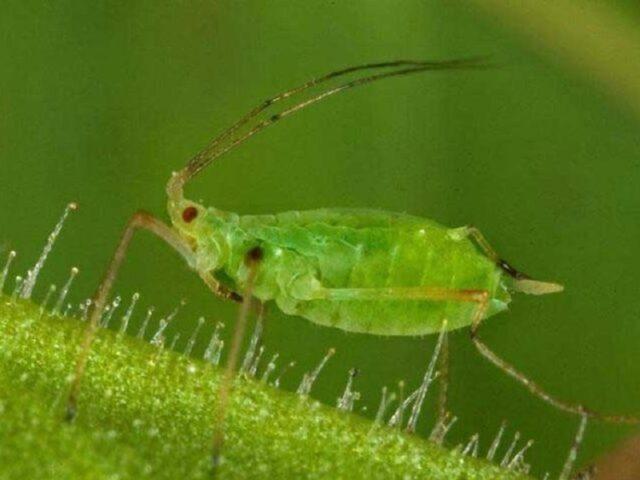 - Blattlaus. Ein kleines Insekt, das eine ganze Kolonie bildet. Der Schädling ernährt sich vom Saft junger Blätter und Triebe.