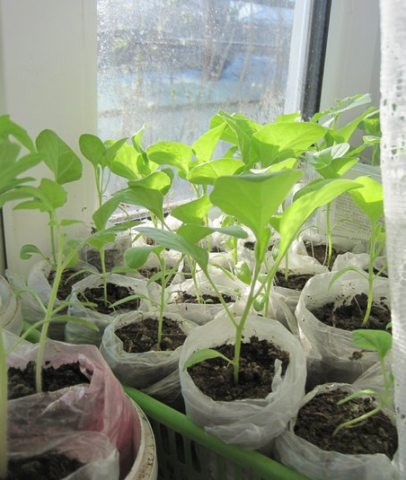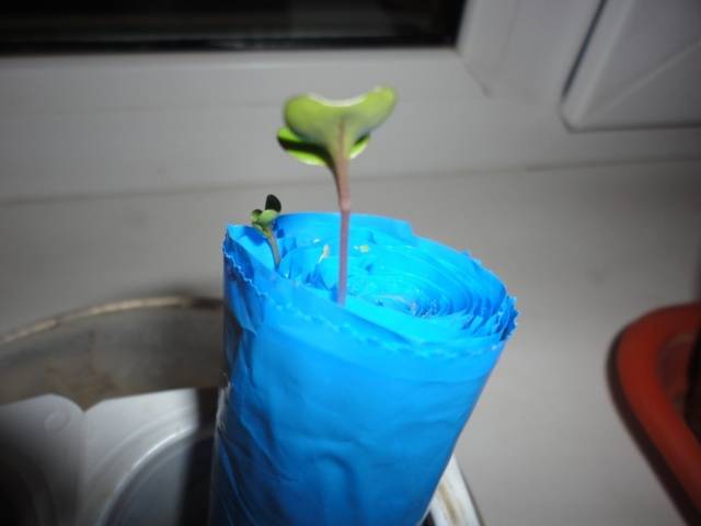Eine Alternative zu Plastikbechern können Plastiktüten sein, beispielsweise aus Milchprodukten. Es ist einfacher, Sämlinge beim anschließenden Einpflanzen in den Boden von ihnen zu entfernen. Bei Bedarf können sie geschnitten werden, wobei der Boden an der Kohlwurzel bleibt.